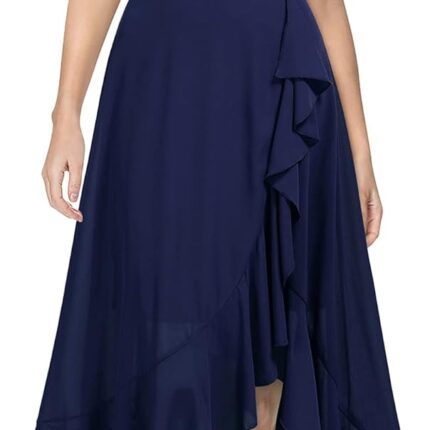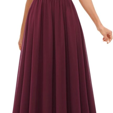 Women’s V Neck Elegant Lace Ruffle Bridesmaid Maxi Dress