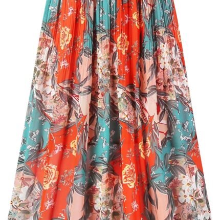 Women’s Pleated Skirt Chiffon Elastic Waist A-Line Midi Length Skirt