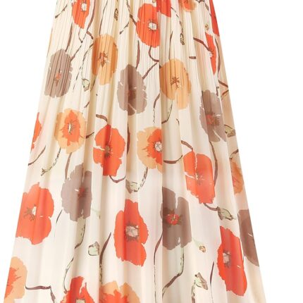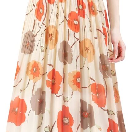 Women’s Pleated Skirt Chiffon Elastic Waist A-Line Midi Length Skirt