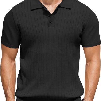 Men’s Knit Shirts Short Sleeve Ribbed Knitted Shirt Summer Lightweight Casual Golf Shirts