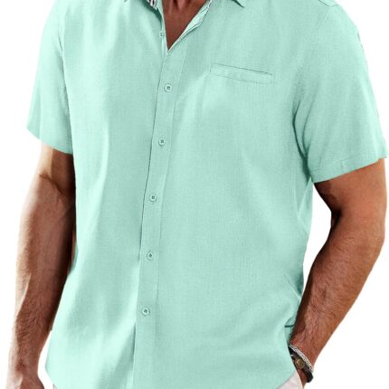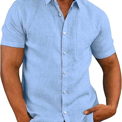 Men’s Casual Linen Shirts Short Sleeve Button Down Shirt Summer Beach Tops