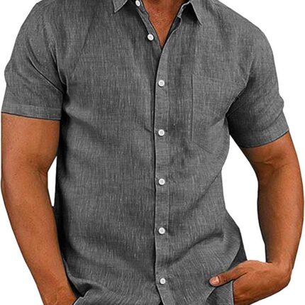 Men’s Casual Button Down Shirts Short Sleeve Linen Shirts Summer Beach Dress Shirt