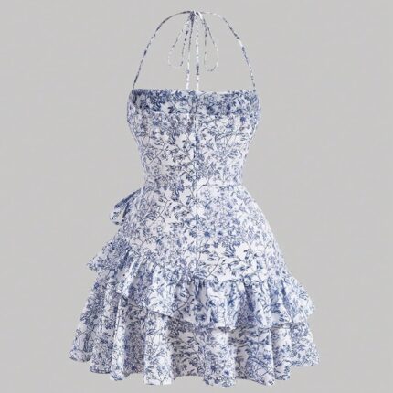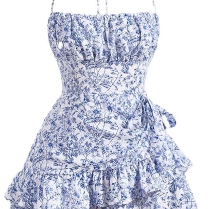 Women’s Summer Floral Cherry Print A Line Short Cami Dress
