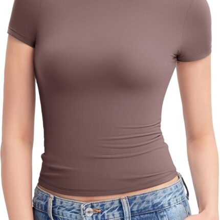 Women’s Basic Short Sleeve Slim Fit T Shirts Soft Crewneck Crop Tee Summer Cute Gym Fashion Clothes