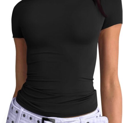 Women’s Basic Short Sleeve Slim Fit T Shirts Soft Crewneck Crop Tee Summer Cute Gym Fashion Clothes