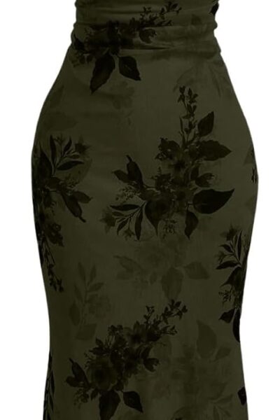 Women’s Floral Print Bodycon Cami Dress Cowl Neck Spaghetti Strap Summer Long Dresses