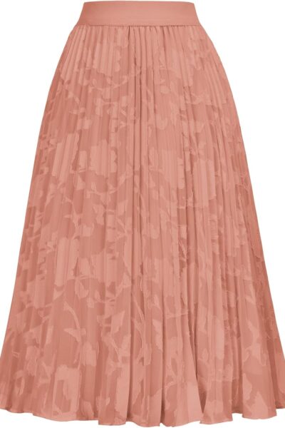 Women High Elastic Waist Pleated Chiffon Skirt Midi Swing A-line Skirts