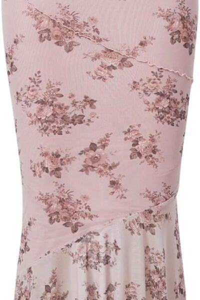 Women’s Floral Mesh Ruffle Hem Maxi Skirt High Waisted Fishtail Long Skirts