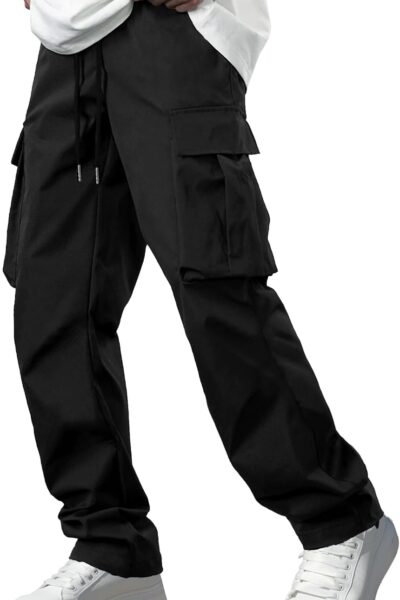 Men’s Casual Cargo Pants Workout Joggers Stretch Sweatpants Hiking Drawstring Tactical Pants with Multi Pockets