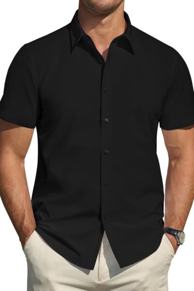Men’s Short Sleeve Dress Shirts Stretch Stain Shield Casual Button Down Shirts Solid Formal Shirt