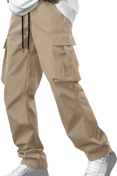 Men’s Casual Cargo Pants Workout Joggers Stretch Sweatpants Hiking Drawstring Tactical Pants with Multi Pockets