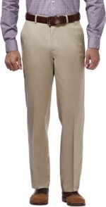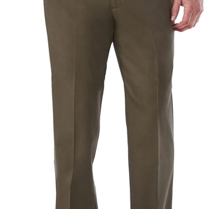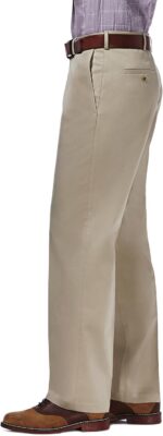 - PREMIUM NO IRON KHAKI: Eliminate the need to iron with the premium khaki pant from . Featuring a hidden expandable waistband that stretches up to 3″, off seam front pockets, single welt back pockets in a flat front, classic fit silhouette.