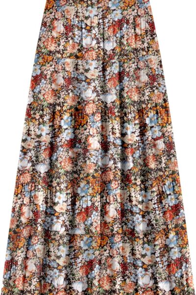 Women’s Chiffon Elastic High Waist Tiered Pleated Floral Printed A-Line Boho Long Maxi Skirts