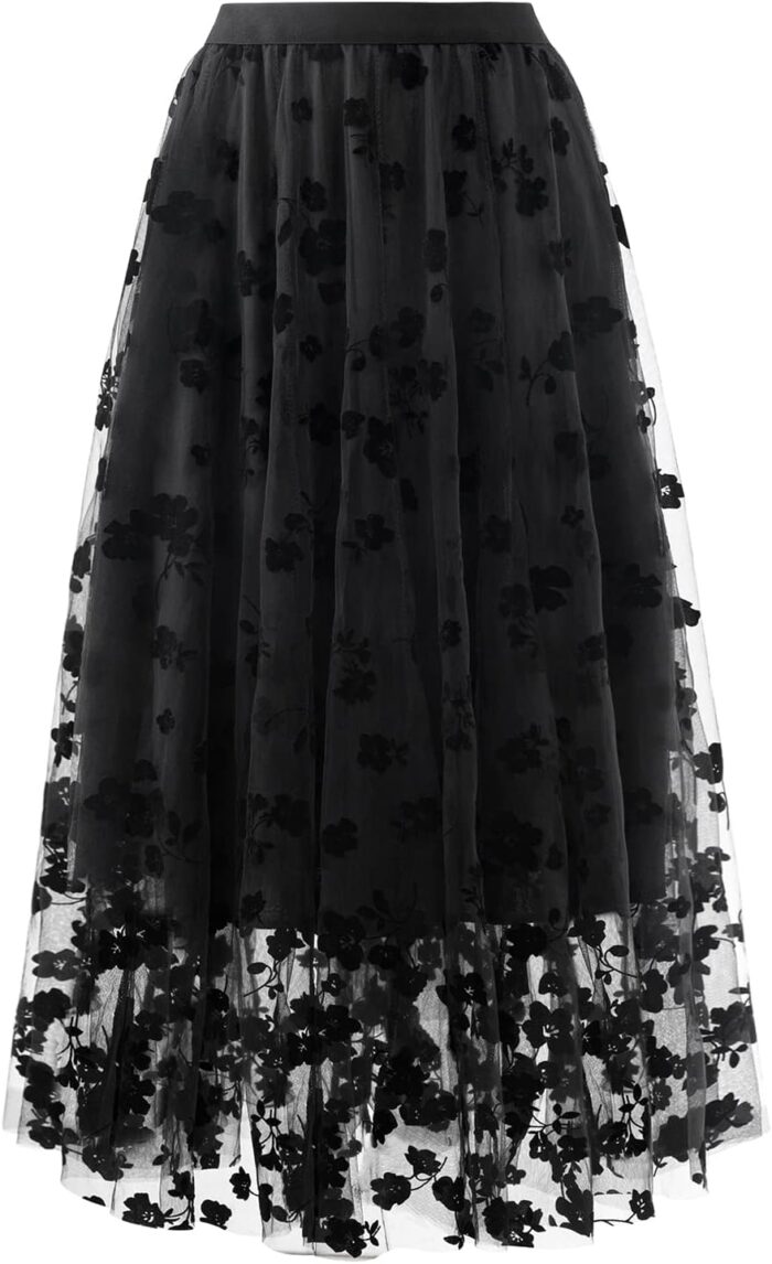 Skirts for Women Midi Long Length Dressy Casual Trendy Summer Tulle A-Line Floral High Waist Skirt