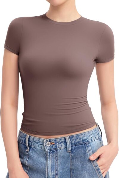 Women’s Crew Neck Short Sleeve Tops Double Lined Slim Fit T Shirts Basic Tee Collection