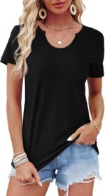 Summer Tops for Women Scoop Neck Basic Tees Short Sleeve Casual T-Shirts Loose Fit