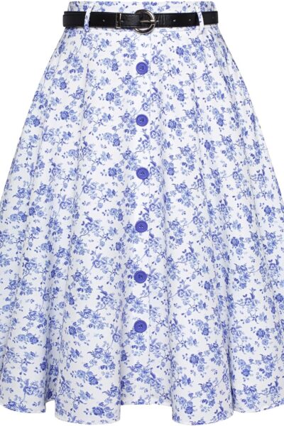 - With Pockets : This midi floral skirt is length at mid-calf, high waist design, hidden zippers on the left side, with open side seam pockets, flowy swing skirt, A-line skirt