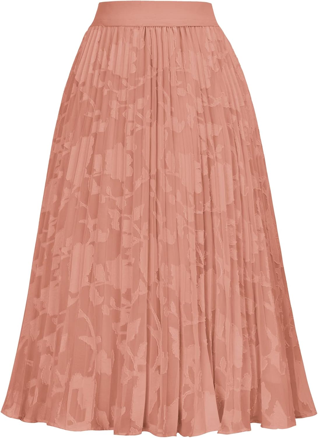 Women High Elastic Waist Pleated Chiffon Skirt Midi Swing A-line Skirts