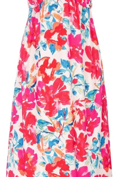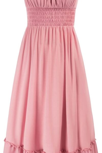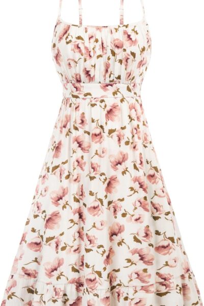 Women’s Spaghetti Strap Floral Dress Ruffle Hem Pleated Casual Summer Dress Boho Flowy Midi Beach Dress
