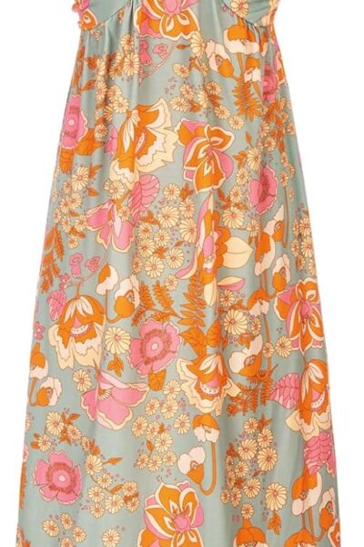 - Features: Spaghetti Strap, Sleeveless, No pockets, V Neck, Elastic back Midi Length Swing skirted, Casual Style, Floral Printed and Pure Color are available