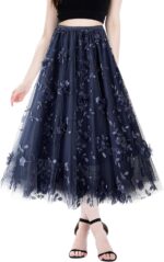 Women’s A Line Tulle Midi Skirt Tutu Tiered Petticoat Skirts Tea-Length Elastic Waist Tutu Skirts