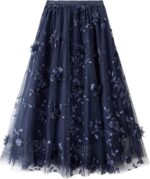 Womens Floral Midi Skirt High Waisted A Line Cute Layered Fairy Mesh Tulle Pleated Skirt