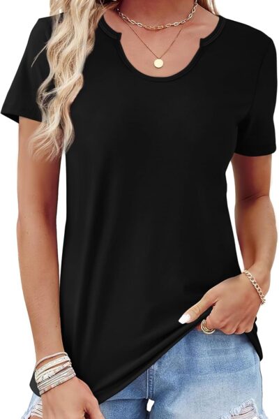 Women’s Summer Tops Casual V Neck T Shirts Short Sleeve Shirts Loose Fit Flowy
