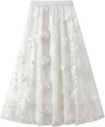 Skirts for Women Midi Long Length Dressy Casual Trendy Summer Tulle A-Line Floral High Waist Skirt