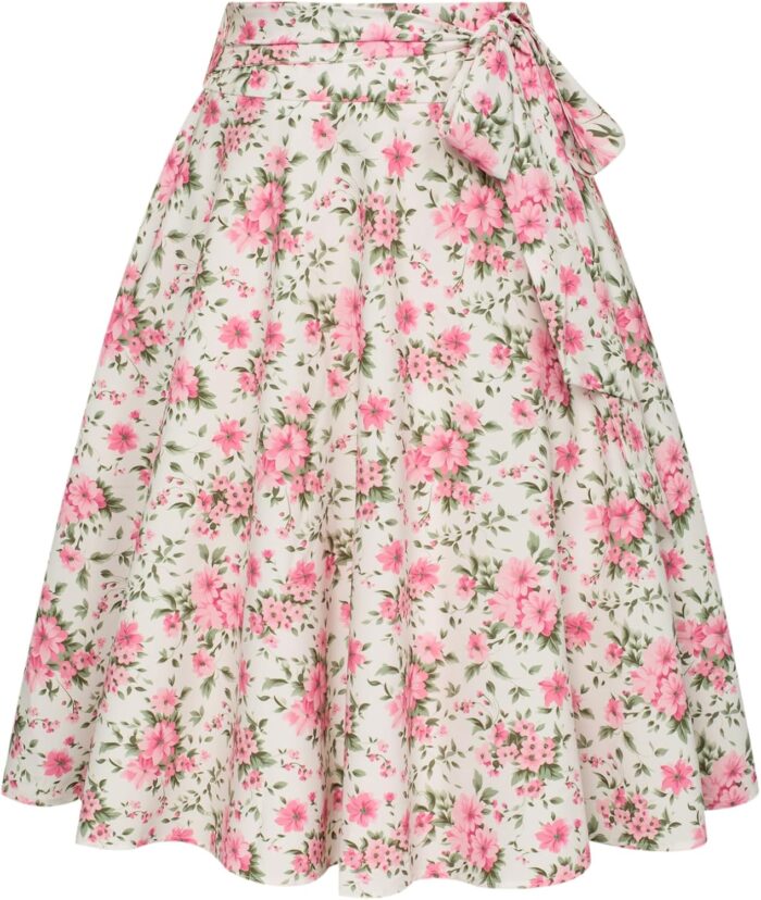 - Item Feature: High waist skirts, Open side-seam pockets, Fixed belt adorns waist, Flared A-Line silhouette, Concealed zipper in the back