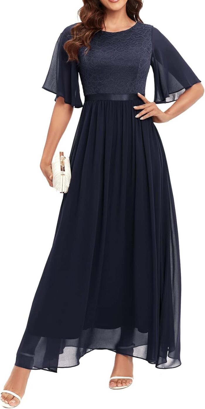 Women’s Formal Floral Lace 2/3 Sleeves Long Evening Party Maxi Dress