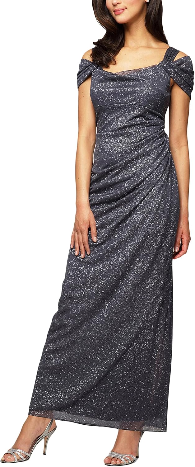 Women’s Long Cold Shoulder Dress, Mother of The Bride, Formal Events, (Petite and Regular Sizes)
