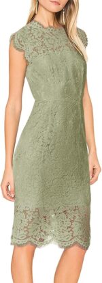 Women’s Sleeveless Lace Floral Elegant Cocktail Dress Crew Neck Knee Length for Party
