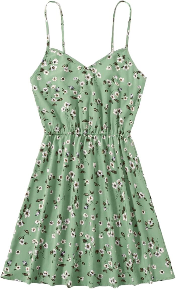 Women’s Sleeveless V Neck Daisy Floral Short A Line Swing Cami Dress