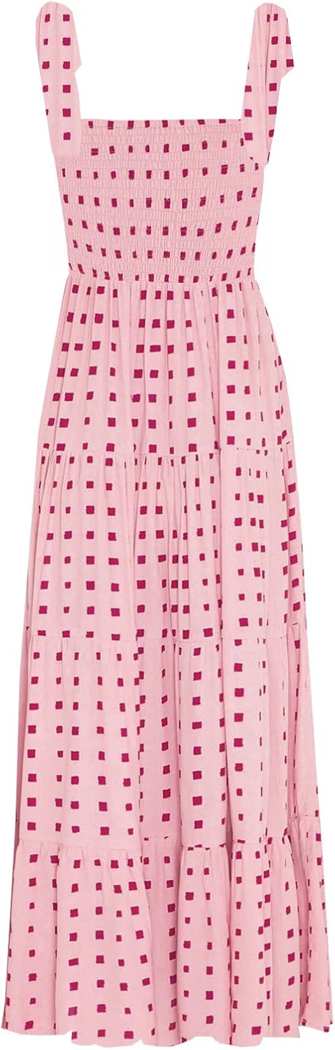 Women’s Summer Boho Spaghetti Strap Square Neck Ruffle Casual Flowy Long Dress Beach Swing Party Maxi Dress