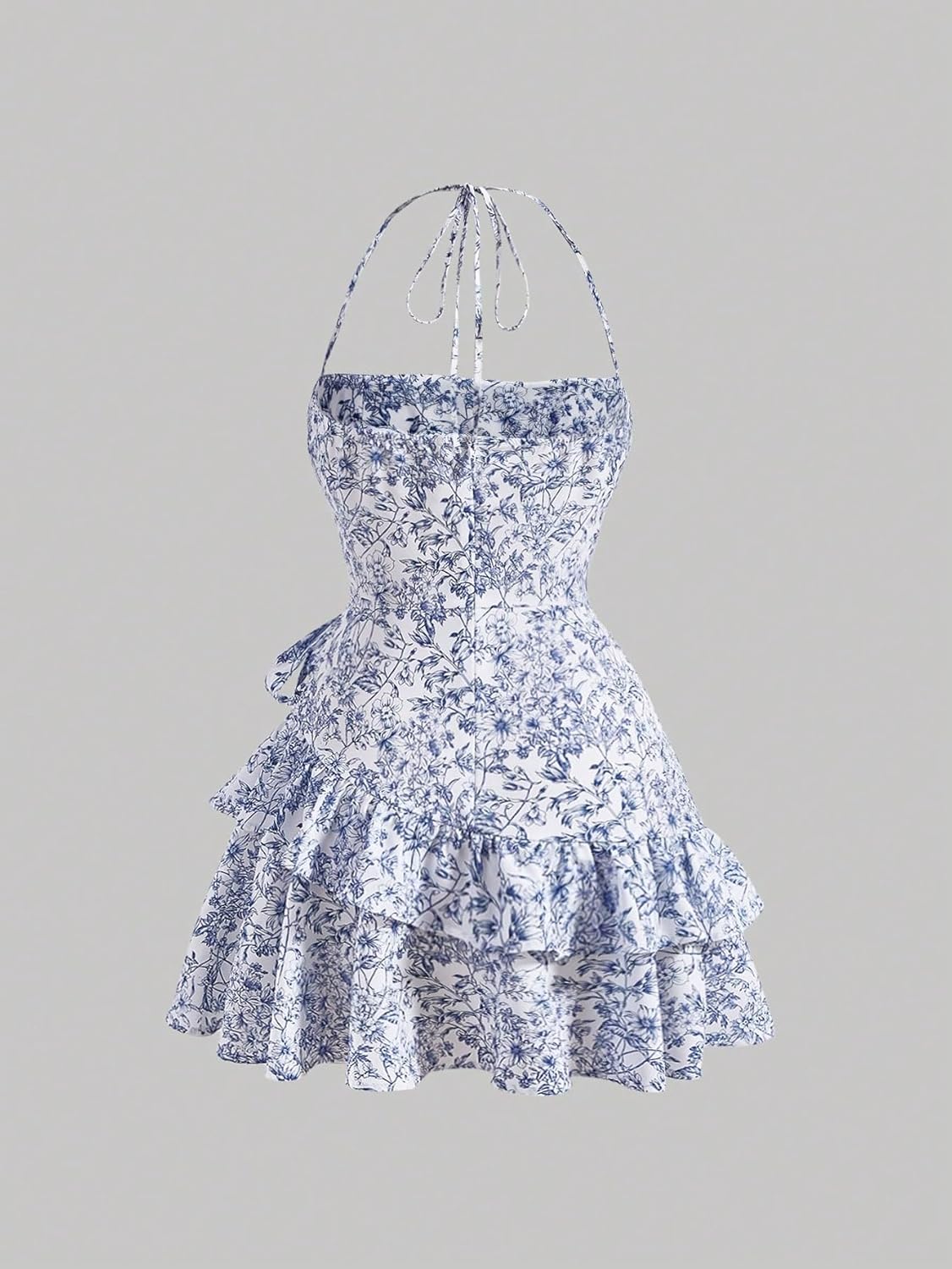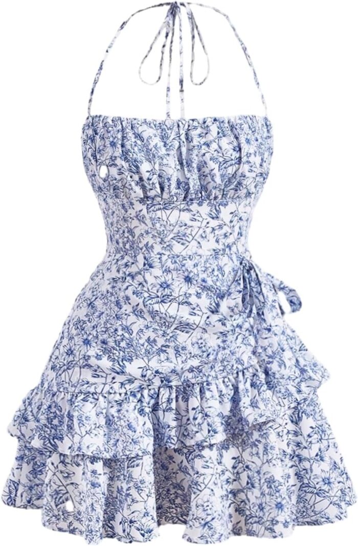 Women’s Summer Halter Dresses Boho Floral Sundress Ruffle Flowy Mini Dress Coquette Birthday Dresses