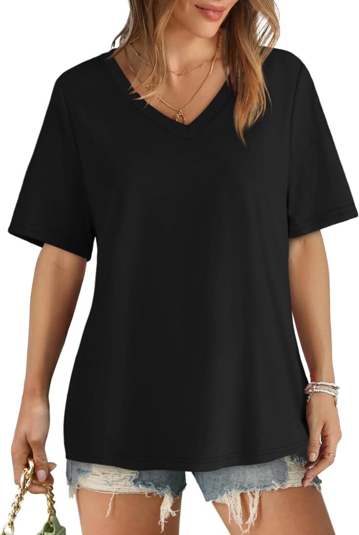 - Womens Tops in Daily Loose Style:This basic short-sleeve v-neck shirt is designed to be comfortable and relaxed, allowing for easy movement and breathability.