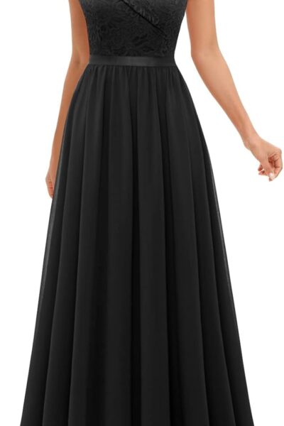 Women’s Lace Bridesmaid Dress A-Line Off Shoulder Floral Lace Chiffon Wedding Dress
