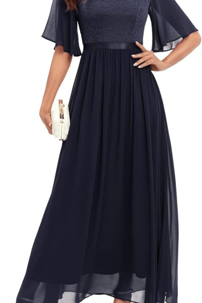 Women’s V Neck Elegant Lace Ruffle Bridesmaid Maxi Dress