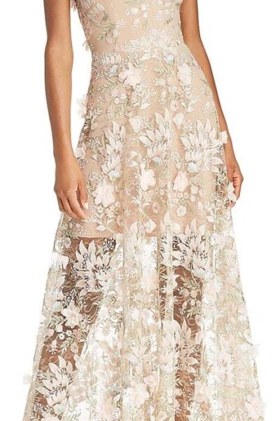 Women’s Embellished Plunging Gown Sleeveless Floral Long Dress