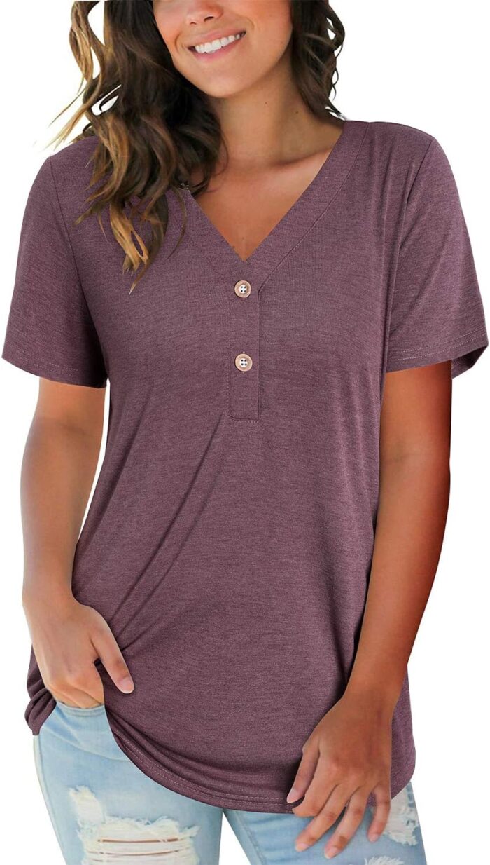 Women’s V Neck Summer Tops Casual Henley Button Down T Shirts Tunic 2024