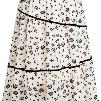 Long Skirt for Women Elastic High Waisted Flowy Skirts Boho Tiered Asymmetrical Skirts with Pockets