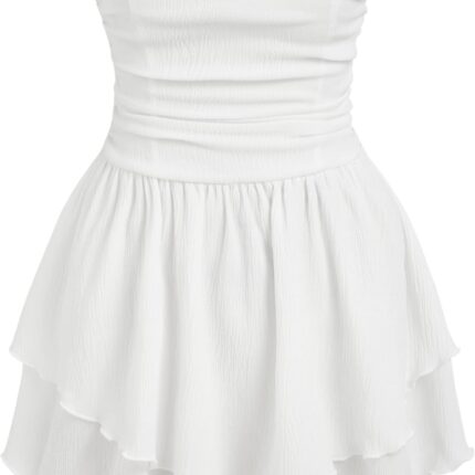 Women’s Spaghetti Strap Floral Dress Ruffle Hem Pleated Casual Summer Dress Boho Flowy Midi Beach Dress